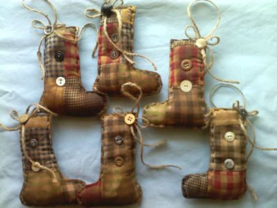 Title (ebay affiliate link): PRIMITIVE XMAS ORNIES BOWL FILLER GRUBBY GINGHAM STOCKINGS SET OF SIX