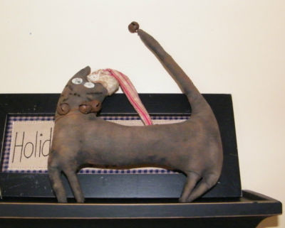 Primitive grungy Christmas black cat
