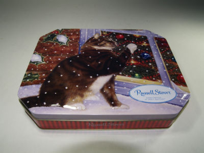 Title (ebay affiliate link): Russell Stover EMBOSSED candy tin "Christmas Visitor" by Anne Mortimer 2011