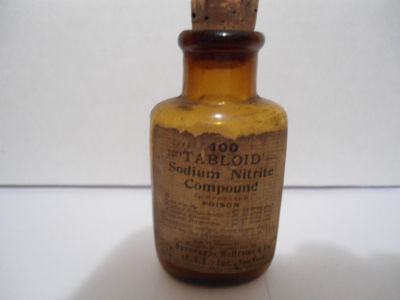"TABLOID" SODIUM NITRITE COMPOUND POISON BOTTLE PAPER LABEL