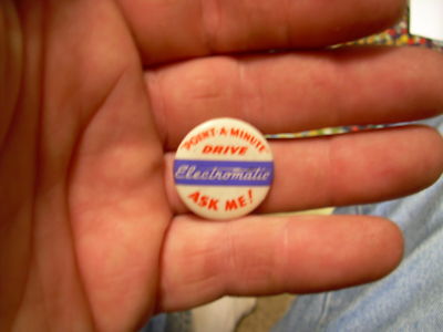 1948 PACKARD pin back button point a minute drive ask me electromatic