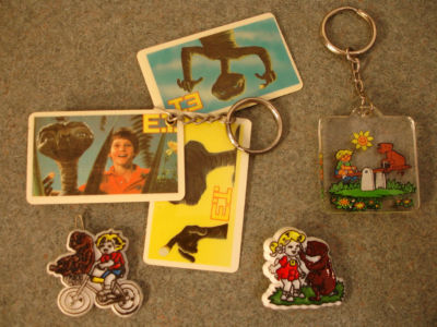 Title (ebay affiliate link): Old Vintage Collectible E.T. Movie memorabilia 2 Key Chains 1 Pin and 1 Barrette
