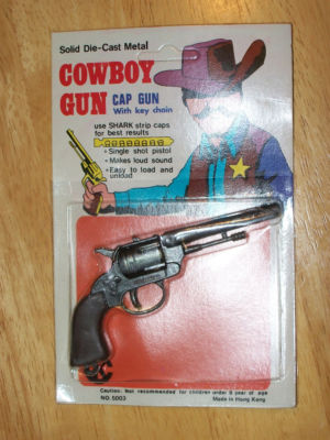 Title (ebay affiliate link): MINI VINTAGE COWBOY CAP GUN SOLID DIE-CAST METAL WITH KEY CHAIN MOC