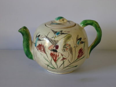 Title (ebay affiliate link): Antique Hand-Painted Japanese Satsuma Swallow Birds Art Pottery Tea Pot NR