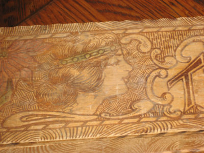 VINTAGE TIE BOX / ART NOUVEAU STYLE ~ PYROGRAPHY (WITH TIE)