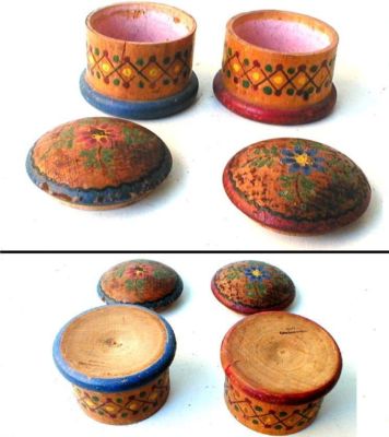 Containers wood hand painted folkart Czech lot 2 vintage