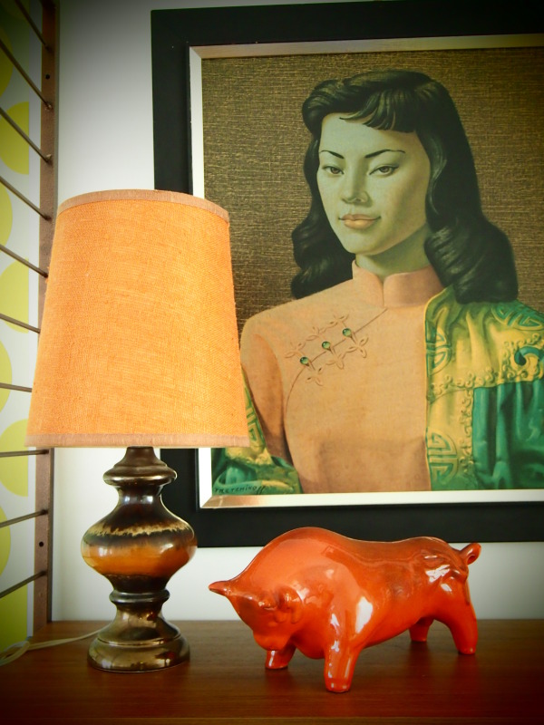 Title (ebay affiliate link): FuNkY retro VINTAGE Large ORANGE Ceramic Glazed Table Lamp 1960/70s eames panton