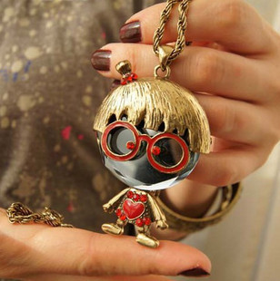 Title (ebay affiliate link): New Arrived Antique Style Necklaces Lovely Rhinestone Girl With Glasses Pendants
