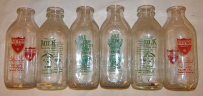 Title (ebay affiliate link): 6 Old dairy milk bottles Mid Valley All Star Blueberry Hill qt NR lot