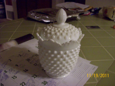 MILK GLASS HOBNAIL 8" LIDDED CANDY DISH