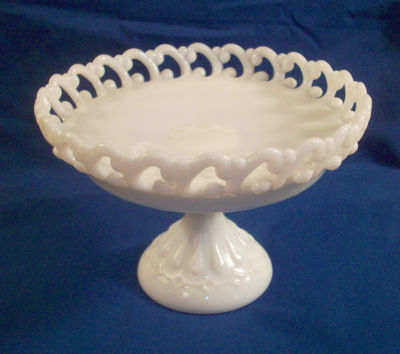 Title (ebay affiliate link): White Milk Glass Compote Vase Fruit Dessert Bowl Dish Lace Bead Edge