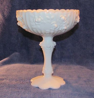 Title (ebay affiliate link): VINTAGE FENTON MILK GLASS PEDESTAL CANDY DISH - ROSE PATTERN