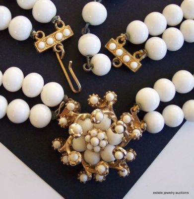 Title (ebay affiliate link): Vtg ANTIQUE Necklace WHITE MILK GLASS Bead Pendant 2 Strand String Jewelry WOW