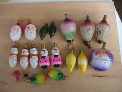 Antique Lot Vtg Xmas Glass Light Bulbs Milk Pinecone Santa Fruit Lantern Snowman