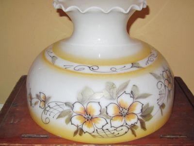Large Milk Glass Hurricane/Oil/Hanging? Lamp Shade-Hand Painted-Vintage/Antique