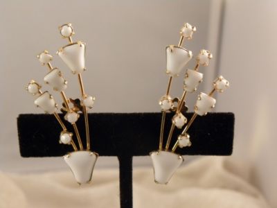 VINTAGE GOLDTONE & MILKGLASS SPRAY EARRINGS