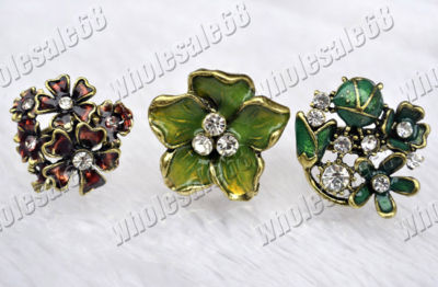 wholesale jewelry 12pcs big mixed CZ rhinestone vintage antique adjustable rings