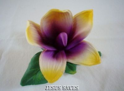 Capodimonte Signed Yellow & Purple Flower w/ Leaves