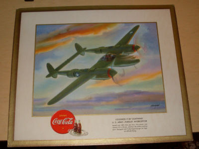 Title (ebay affiliate link): COCA COLA WW2 AIR PLANE LITHO LOCKHEED P-38 LIGHTNING 1943