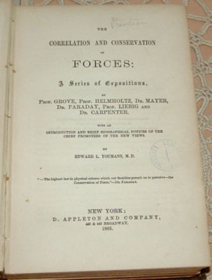 Title (ebay affiliate link): The Correlation And Conservation of Forces 1865 A Series of Expositions Hard Cvr