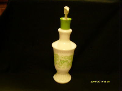 vintage jergens milk glass lotion bottle dispenser with green flower design