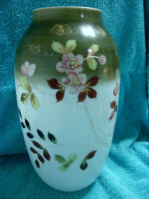 Vintage 10" Blown Hand painted White Milk Glass Vase