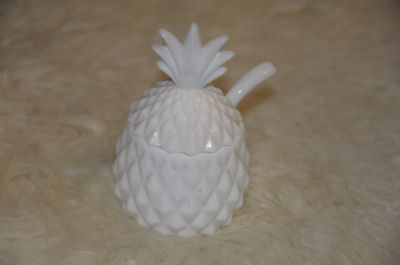 Title (ebay affiliate link): VINTAGE 1950'S MILK GLASS "PINEAPPLE" SHAPE JAM JAR WITH SPOON