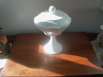 Title (ebay affiliate link): Vintage Milk Glass Candy Dish with Grape & Leaves Design with Lid - Large
