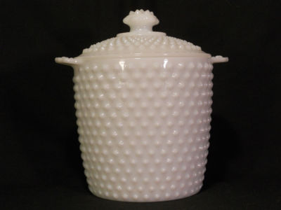 VINTAGE WHITE - MILK GLASS - HOBNAIL COOKIE JAR -