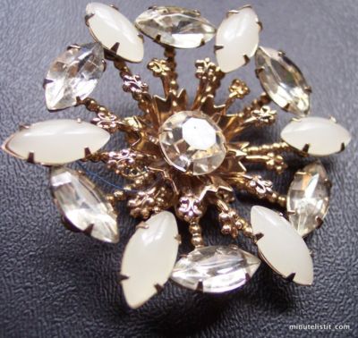 Title (ebay affiliate link): Vintage BROOCH Pin FLOWER Glass Milk Tiered Prong SET SNOW FLAKE !!