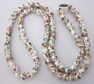 Vintage Milk Glass Millefiori Flower Bead Necklace