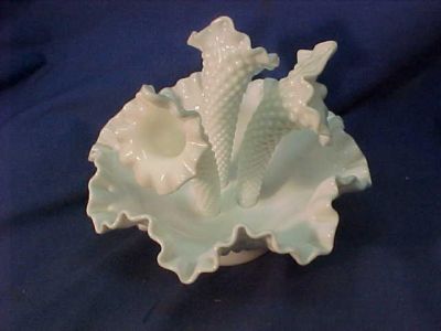 Vintage FENTON HOBNAIL White MILK GLASS EPERGNE