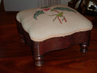 Title (ebay affiliate link): SMALL ANTIQUE MAHOGONY FOOTSTOOL with OLD NEEDLEPOINT TOP