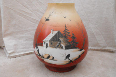 Title (ebay affiliate link): OLD ANTIQUE PAINTED GLASS OIL LAMP SHADE BOHEMIAN SCENE