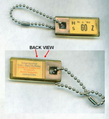 VINTAGE N.J. 1950 DAV LICENSE PLATE TAG NEW JERSEY KEY CHAIN