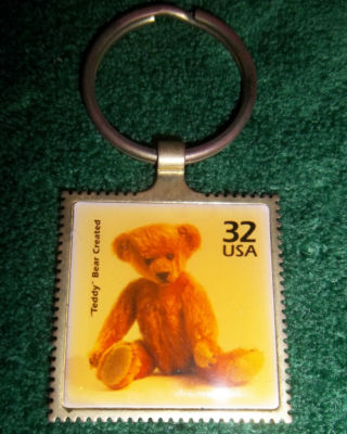 Title (ebay affiliate link): EUC VINTAGE POSTAGE .32 POSTAGE STAMP KEYCHAIN TEDDY BEAR DESIGN - FAST SHIPPING