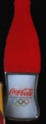 Title (ebay affiliate link): Rare Coca-Cola Olympic Pin Cutout Coke Bottle and Slider Glass Olympic Slide Pin