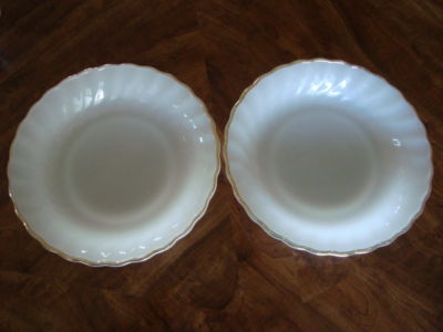 Achor Hocking Milk Glass soup bowls with gold trim (2)