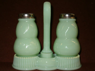 Title (ebay affiliate link): JADEITE JADITE GLASS SALT AND PEPPER SHAKERS WITH HOLDER JADE MILK GREEN OPAQUE