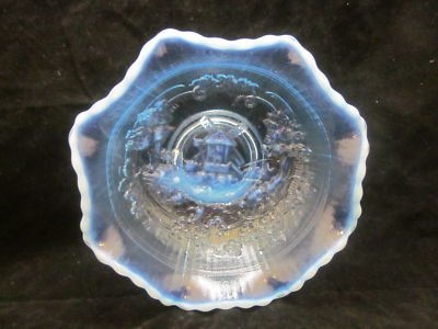 Title (ebay affiliate link): Vtg Smith Glass Company Blue Bowl W/Windmill Design-Milk Glass Ruffled Edge