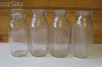 4 Vintage Half Pint Glass Milk Cream Bottles