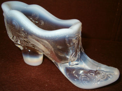 Title (ebay affiliate link): CRYSTAL CLEAR OPALESCENT ART GLASS CHRISTMAS BOW SLIPPER SHOE BOOT WHITE NR MILK