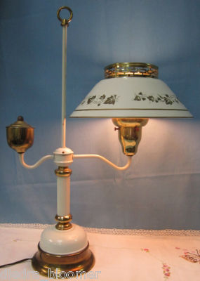 Title (ebay affiliate link): Nice Vintage Student Table Lamp White Tin Shade Brass Base Milk Glass Globe