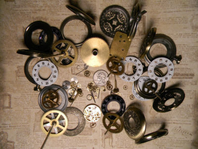 Title (ebay affiliate link): ANTIQUE, VINTAGE,CLOCK AND POCKETWATCH PARTS GEARS MOVEMENTS STEAMPUNK ART .75LB