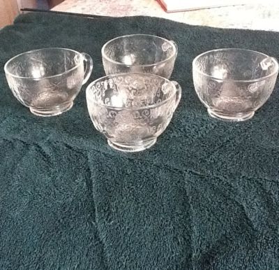 Title (ebay affiliate link): Lot of 4 Florentine Poppy Depression Glass Tea Cups