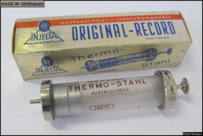 Title (ebay affiliate link): WWII ORIGINAL GERMAN MEDICAL BRASS & GLASS SYRINGE 20cc