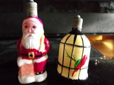 Title (ebay affiliate link): 2 Old Figural Milk Glass Christmas Ornament Lights 40's 50's NR