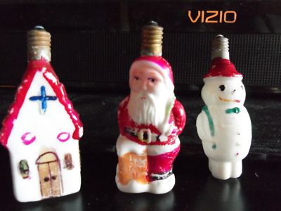 3 Old Figural Milk Glass Christmas Ornament Lights 1940's
