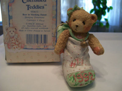 Title (ebay affiliate link): Cherished Teddies Bear In Stocking Dated 1992 Hanging Ornament