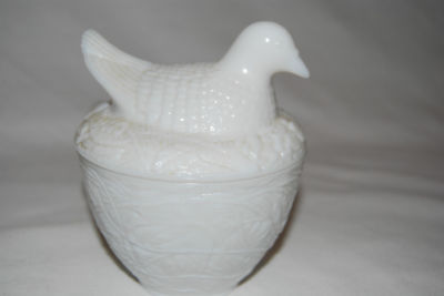 milk glass avon chicken hen bird sitting on nest basket